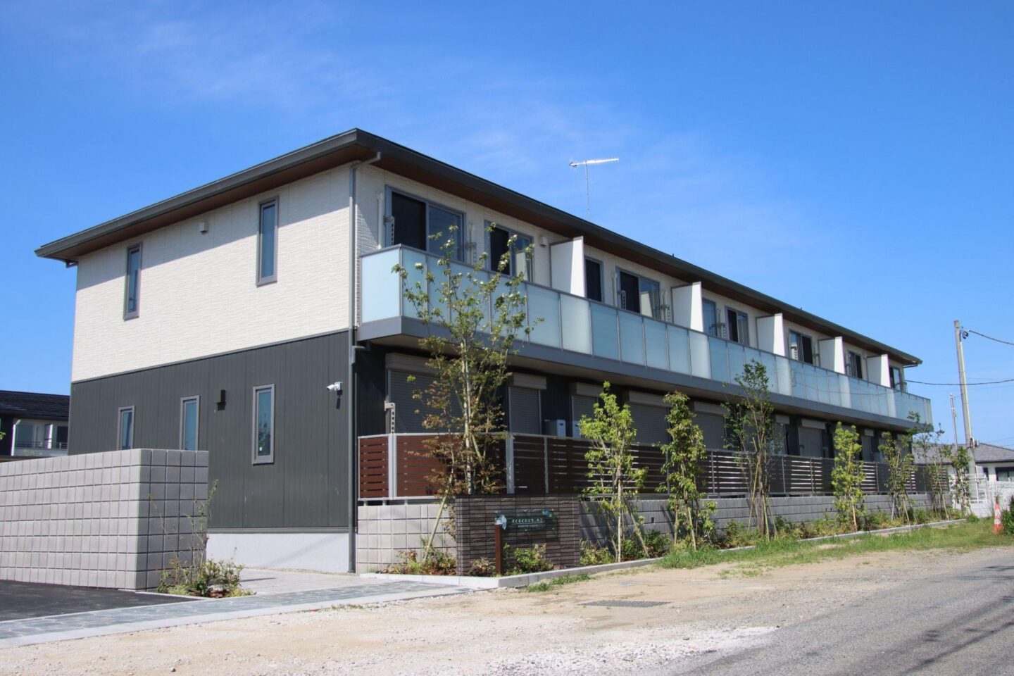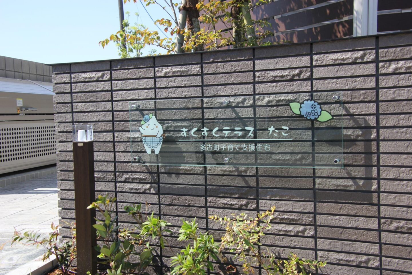 「すくすくテラス たこ」は町役場や病院、スーパーなどが集まる中心エリアにあります。3LDK・6戸の集合住宅を2棟整備しました。